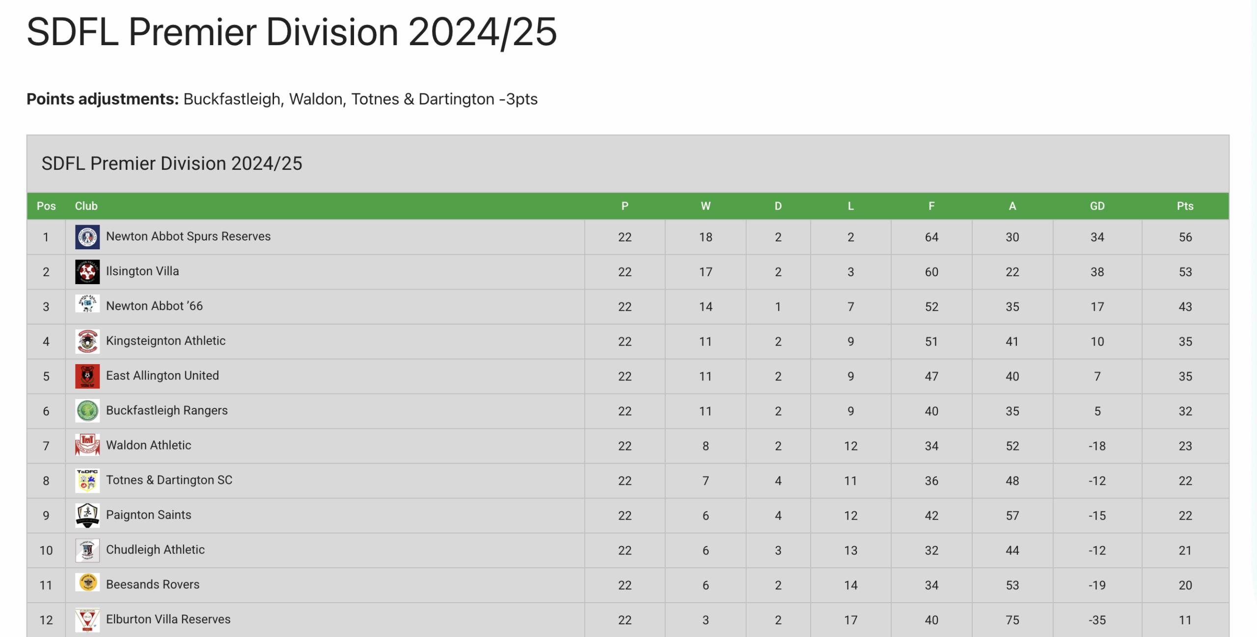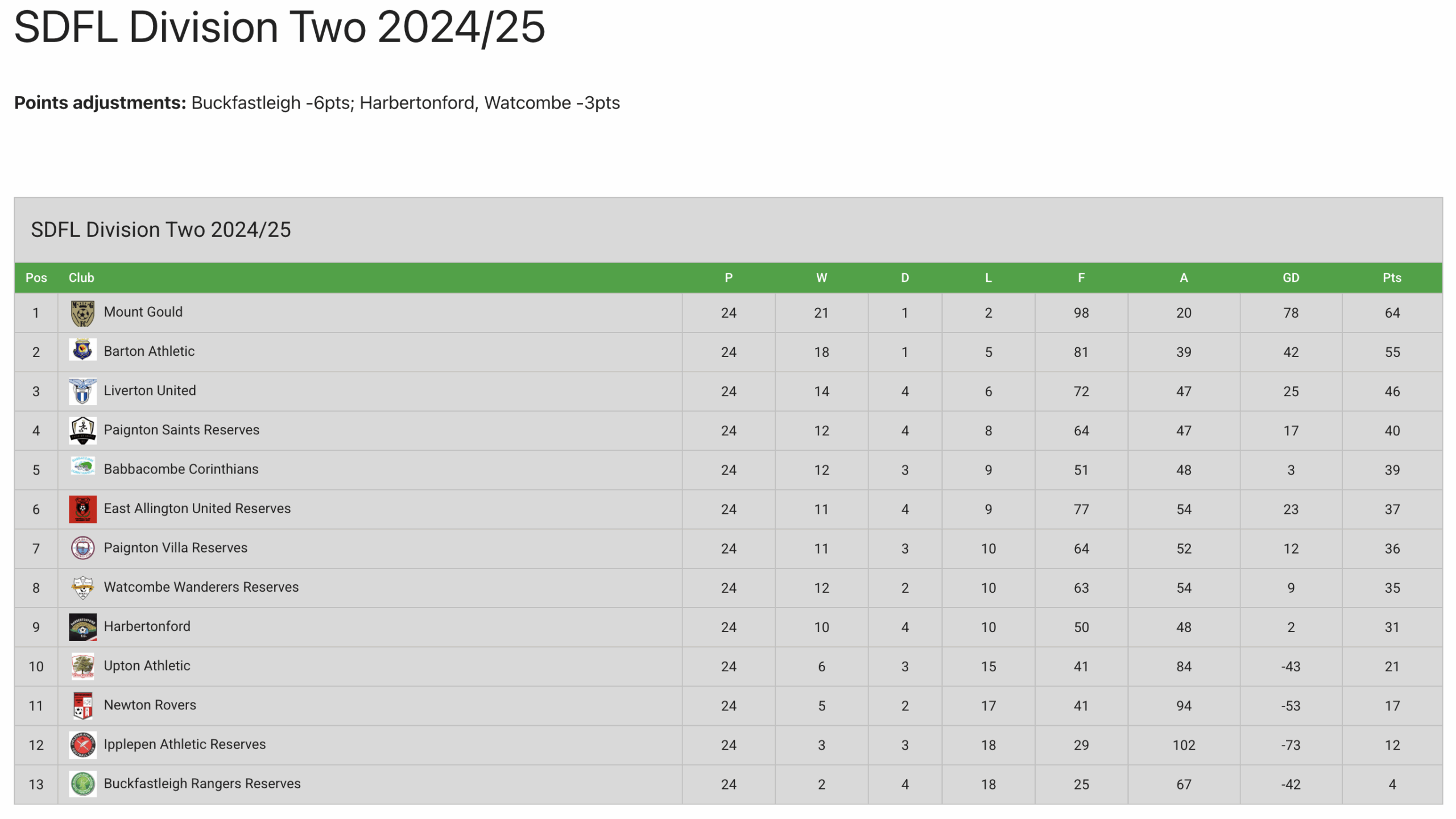 Final League Tables: First Team – Reserves